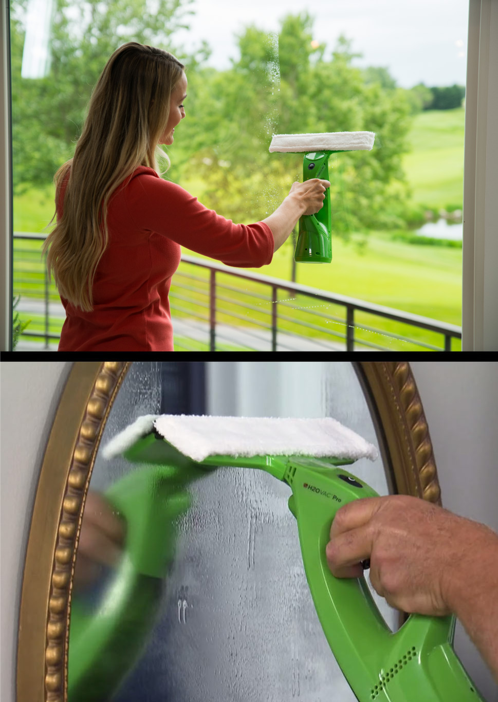 H2O VAC™ Pro power cleans virtually any hard vertical surface and then sucks up the residue, so you never have to touch it. Say goodbye to soggy paper towels or dangerous chemicals.